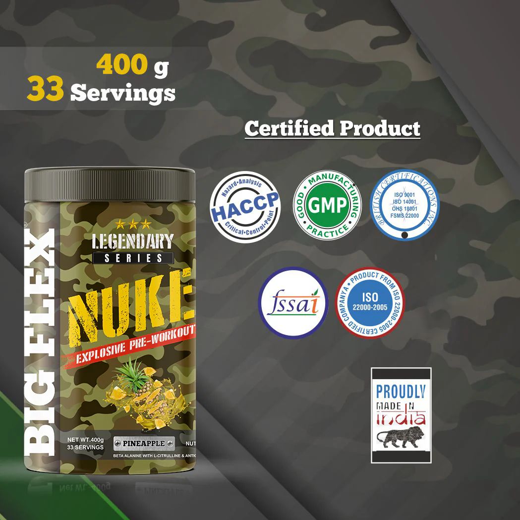 Bigflex NUKE Pre-Workout Powder is built for athletes who train with intensity and purpose. This high-powered formula is designed to deliver maximum energy, razor-sharp focus, and explosive performance, helping you dominate every set and every rep.