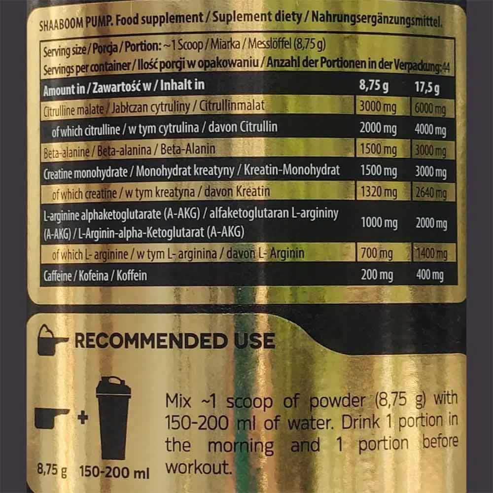 This pre-workout is ideal for lifters who train for muscle growth, hypertrophy, and mind-muscle connection. Whether used solo or stacked, Shaaboom Pump helps you push volume, maintain endurance, and achieve a deep, lasting pump from start to finish.