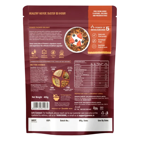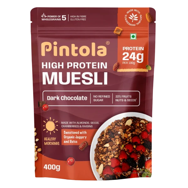 Whether your goal is increasing protein intake, supporting digestive health, or achieving sustained energy throughout the day, Pintola High Protein Muesli Dark Chocolate & Cranberry – 1 Kg offers a healthy, nutrient-packed solution for an active lifestyle.