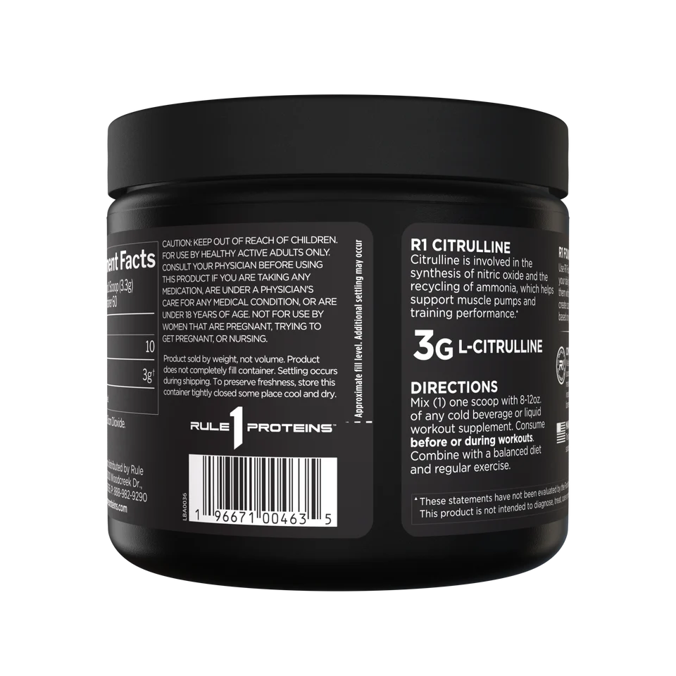 Rule One R1 Citrulline, now available at jantasupplements.com, is a premium pre-workout amino acid supplement formulated to support enhanced blood flow, muscular endurance, and workout performance. L-Citrulline is a key amino acid that helps increase nitric oxide levels in the body, leading to improved circulation, better oxygen delivery, and more effective nutrient transport to working muscles.